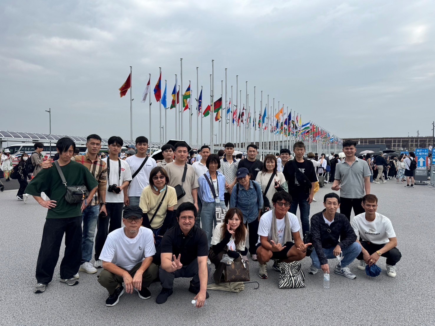 社員みんなでベトナムパピリオン入場、ベトナムの研修生たちも楽しめて